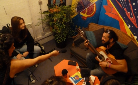 Les adolescents de RADIO EMA ont la chance d'y être accueillis chaleureusement et d'être guidés par Sandrine Cathebard! Elle nous explique tout sur l'histoire du festival, les différentes salles et le fonctionnement du festival. Nous assistons aux balances et nous interviewons des artistes. Cette année nous avons rencontré Nedjim Bouizzoul, le leader du groupe Labess. Et parfois ces rencontres sont magiques et donnent lieu à de véritables surprises, comme cette fois-ci!